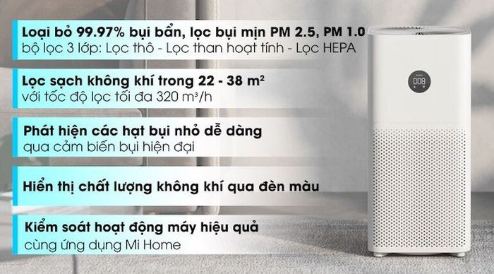 Kết hợp với bộ lọc mạnh mẽ, cùng công suất 29W, máy lọc không khí Xiaomi 3C mang đến hiệu quả vô song với khả năng lọc sạch lên đến 99.99%.