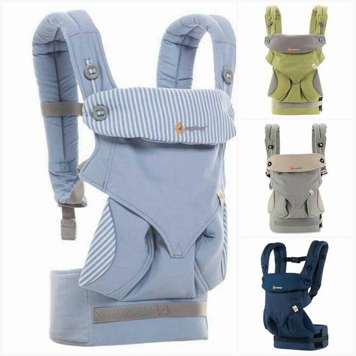 Địu Ergo Baby 360 có nhiều lựa chọn màu sắc cho các mẹ như: xanh tím than, ghi, xanh nhạt, xanh lá cây.