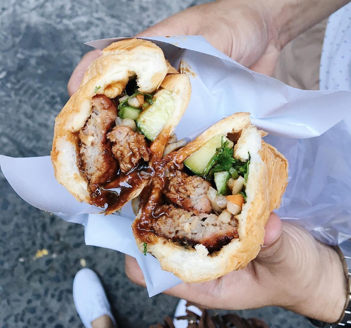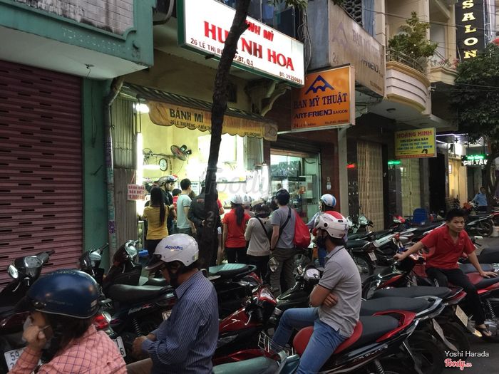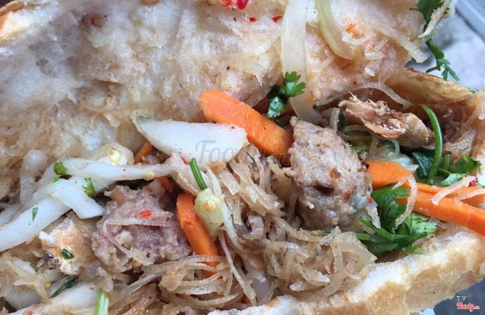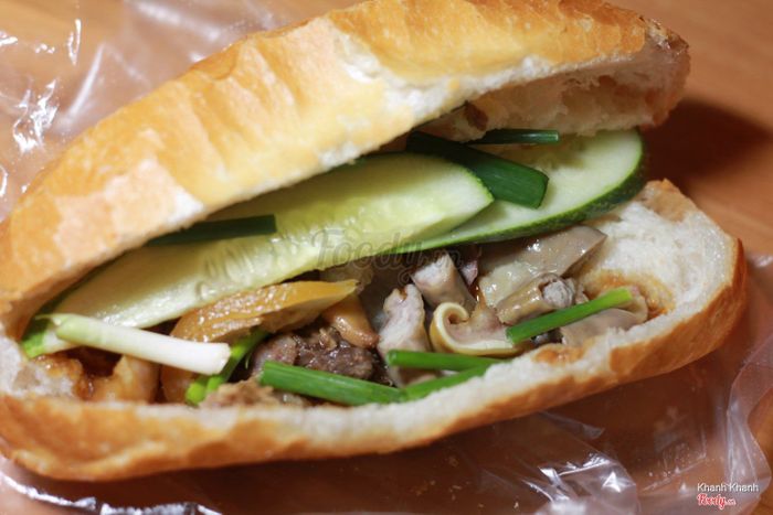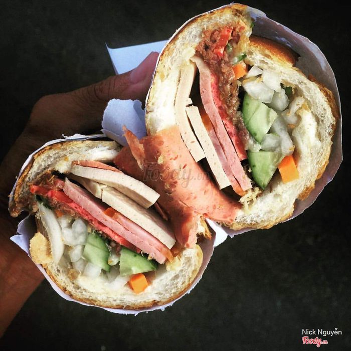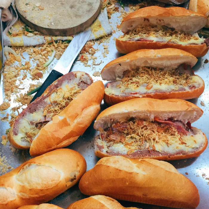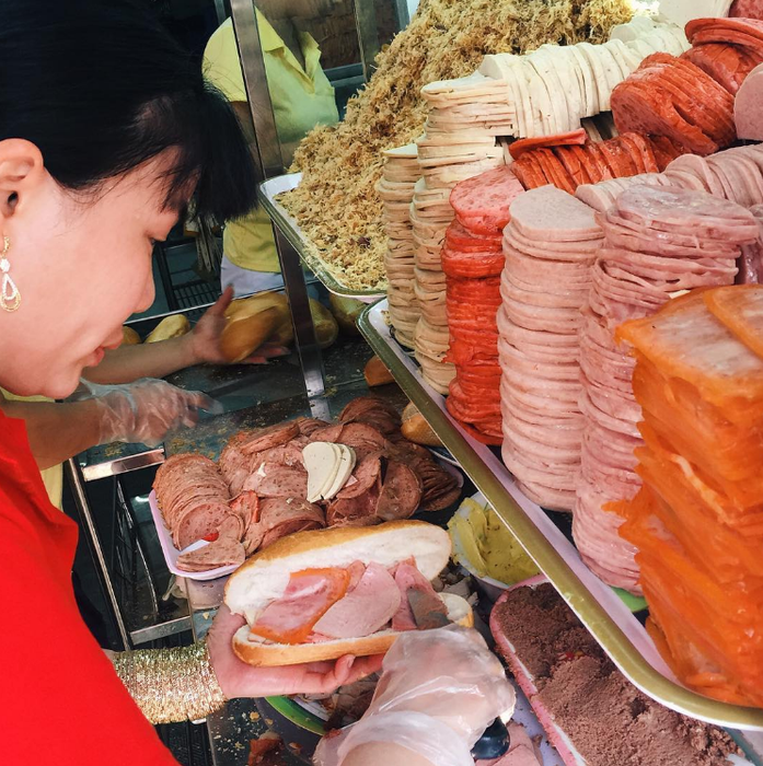 4. Bánh mì Huỳnh HoaBánh mì Huỳnh Hoa nằm ở trung tâm quận 1, được biết đến như xe bánh mì có giá cao nhất Sài Gòn - 36k/ổ. Bánh ở đây có lượng nhân nhiều đến mức, một người ăn trung bình chỉ có thể ăn được nửa ổ. Phần pa tê thơm ngon, béo ngậy được đặt ở giữa các loại chả, jambong...