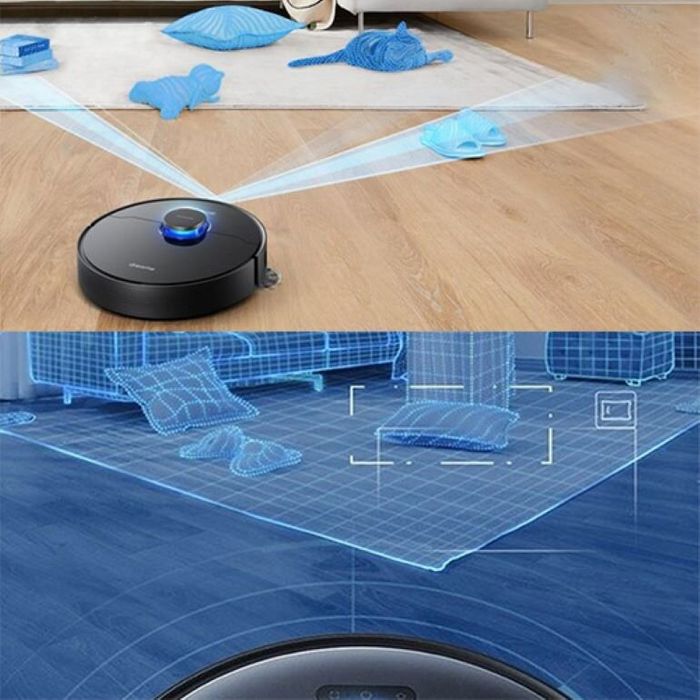 Robot hỗ trợ tạo mô hình 3D, thực hiện quét và xác định vị trí để di chuyển một cách chính xác. Trong quá trình làm sạch, nó tự động giảm tốc độ khi gặp trở ngại, đảm bảo an toàn cho đồ đạc và vật nuôi.