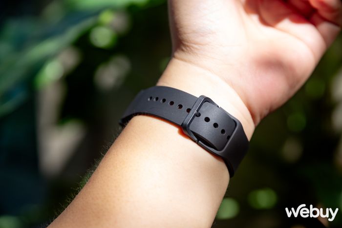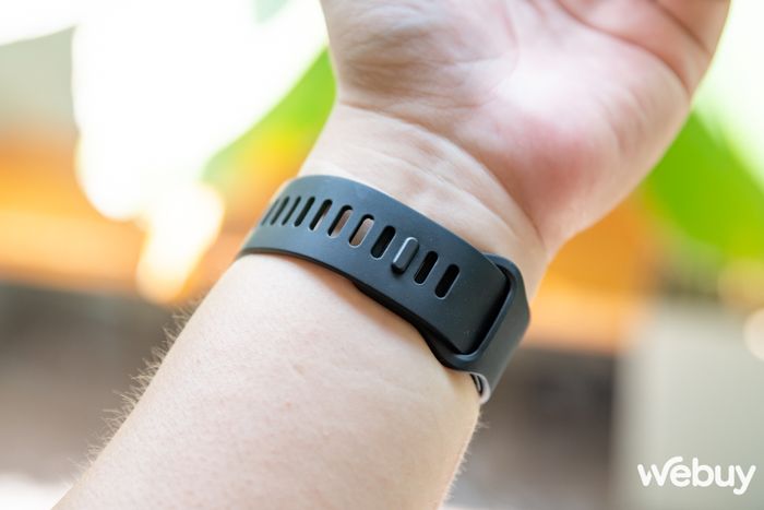 Dây đeo của Redmi Watch 5 Active được làm từ TPU cao cấp, nhẹ và mềm, với thiết kế thoáng khí giúp người dùng cảm thấy thoải mái khi đeo lâu dài. Tuy nhiên, một số người có cổ tay lớn như tôi sẽ gặp khó khăn khi sử dụng, vì dây khá ngắn và chỉ vừa đủ với kích cỡ tay.