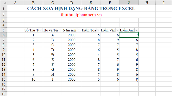 Định dạng bảng không chỉ giúp quản lý dữ liệu một cách chuyên nghiệp mà còn tạo điểm nhấn với đủ kiểu dáng và màu sắc. Tuy nhiên, nếu bạn muốn thoát khỏi định dạng này vì lý do nào đó, hãy tham khảo cách xóa định dạng bảng dưới đây.