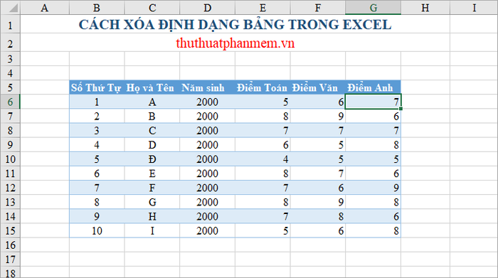 Như vậy, bảng bạn chọn vẫn giữ nguyên định dạng, nhưng không còn kiểu bảng (Table Styles) nữa.