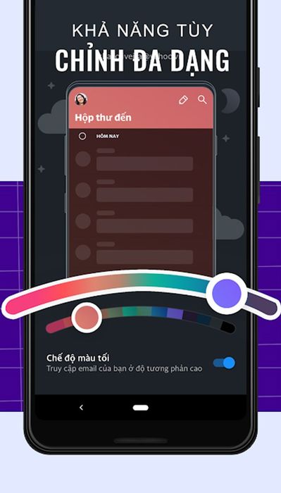 Ứng dụng hỗ trợ chế độ Dark Mode và cho phép bạn tùy chỉnh màu nền cho từng địa chỉ email khác nhau. Điều này giúp bảo vệ đôi mắt và tiết kiệm pin cho thiết bị của bạn.