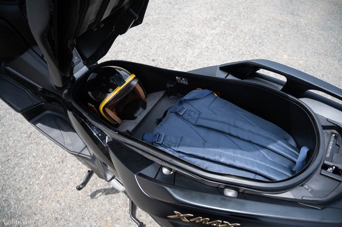 Thường nghe nói, maxi scooter là lựa chọn của những ông chồng muốn cảm giác phân khối lớn nhưng lại phải chiều lòng vợ muốn xe tay ga. Đúng là, để hòa quyện hai thứ đó, maxi scooter thực sự là sự lựa chọn hợp lý nhất, vừa mang lại sức mạnh của phân khối lớn, vừa đảm bảo sự tiện dụng cho việc hàng ngày. Điều đầu tiên là khoang xe, mặc dù con số chính xác không được công bố nhưng khoang của XMAX 300 đủ rộng để chứa 2 chiếc mũ bảo hiểm full face và nhiều vật dụng khác.