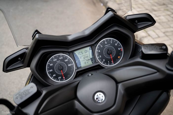 Trang bị hiện đại trên Yamaha XMAX 300 không chỉ nằm ở phần đồng hồ tốc độ nửa LCD nửa cơ. Mà còn được cải tiến với 2 vòng tròn và màn LCD nhỏ cung cấp đầy đủ thông tin vận hành xe.