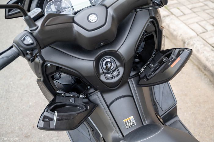 Thứ hai, XMAX 300 có tới 2 hộc đựng đồ ở hai bên yên trước. Ở bên trái, hộc đựng đồ của xe được khóa bằng cơ chế thông qua một nút bấm trên cụm smartkey. Đây là nơi có thể sạc điện thoại và để những vật có giá trị như điện thoại chẳng hạn. Trong khi hộc còn lại mở ra bằng cách ấn tương tự như các dòng ADV của Honda, chỉ được sử dụng để đựng những món không có nhiều giá trị.Mức tiêu thụ nhiên liệu siêu thấp
