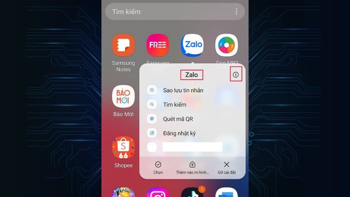 Step 1: Press and hold the Zalo icon on the home screen. Then select 'Information' from the small menu that appears.