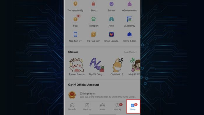 Step 1: Open the Zalo app and tap on the 'Add' button at the bottom right corner of the screen.