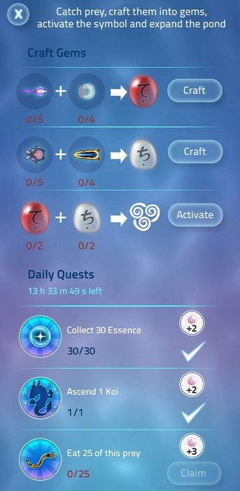 Mỗi giai đoạn đòi hỏi hoàn thành nhiệm vụ và thu thập viên đá để mở phong ấn, mở đường cho chú cá tiến vào giai đoạn mới.