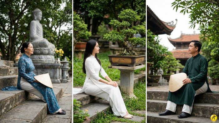 Chụp ảnh áo dài tại chùa cần thể hiện sự thanh lịch, tôn trọng không gian tâm linh, ưu tiên sự nhẹ nhàng và tự nhiên để hòa hợp với kiến trúc cổ kính.