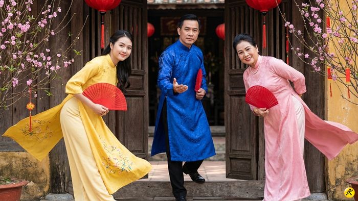 Vào dịp Tết, bộ ảnh áo dài thường được kết hợp với các phụ kiện mang ý nghĩa may mắn.