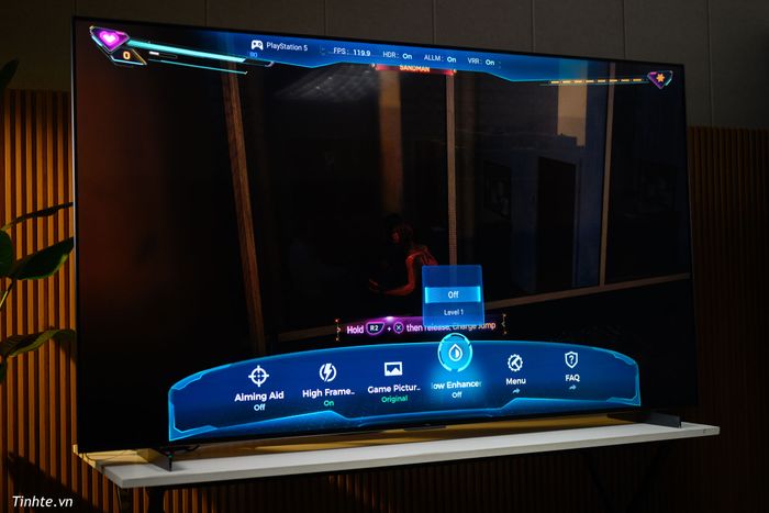 - Chế độ âm thanh vòm ảo với 3 tùy chọn khác nhau, tối ưu cho game thủ FPS, đặc biệt là trong các game như CoD với chế độ chơi nhiều người. Điều thú vị là tính năng này thường xuất hiện trên các màn hình gaming, nhưng đây là lần đầu tiên mình thấy trên TV, rất ấn tượng.