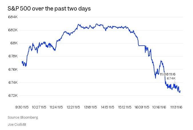 Chứng minh cho điều này là sự giảm điểm đồng loạt của các cổ phiếu hàng đầu như Nvidia, Microsoft, và Meta, trong khi Palantir tiếp tục giảm mạnh sau những lo ngại về định giá từ báo cáo thu nhập.
