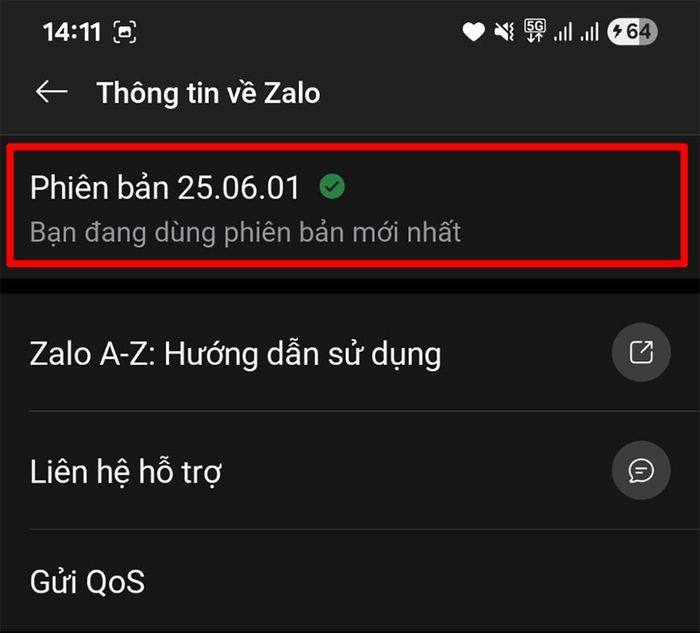 Bước 2: Kiểm tra trạng thái cập nhật của Zalo. Nếu có phiên bản mới, nhấn vào mục Phiên bản để chuyển đến CH Play hoặc App Store và tiến hành nâng cấp ứng dụng.