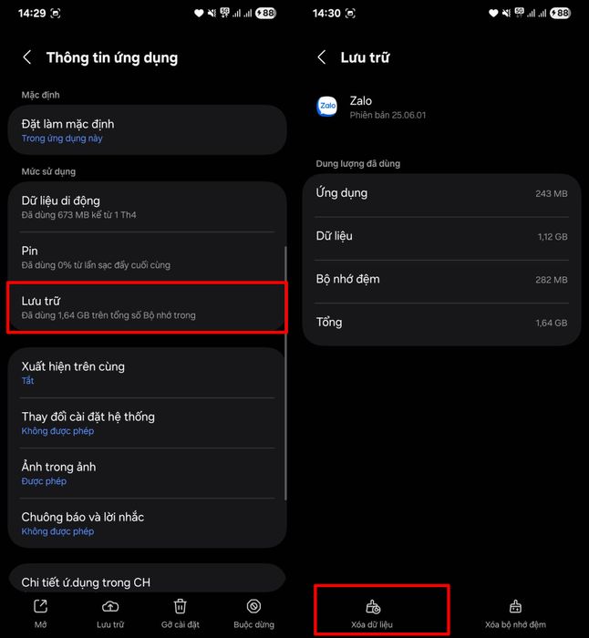 2.2 Xóa dữ liệu bộ nhớ đệm ứng dụng Zalo