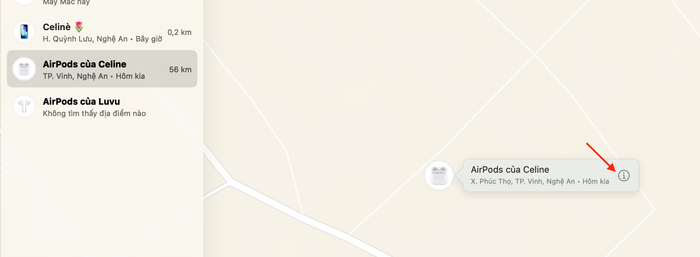 - Bước 2: Truy cập tab Thiết bị, sau đó chọn tên AirPods đang bị thất lạc.