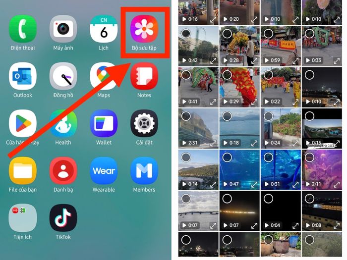 Bước 1: Truy cập ứng dụng Thư viện (Gallery) trên thiết bị Samsung > Lựa chọn video cần chỉnh sửa.