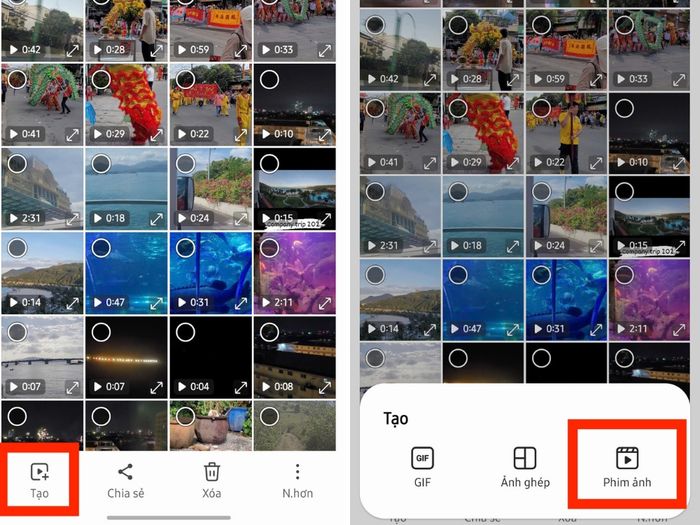 Bấm chọn Tạo > Nhấn vào mục Phim ảnh