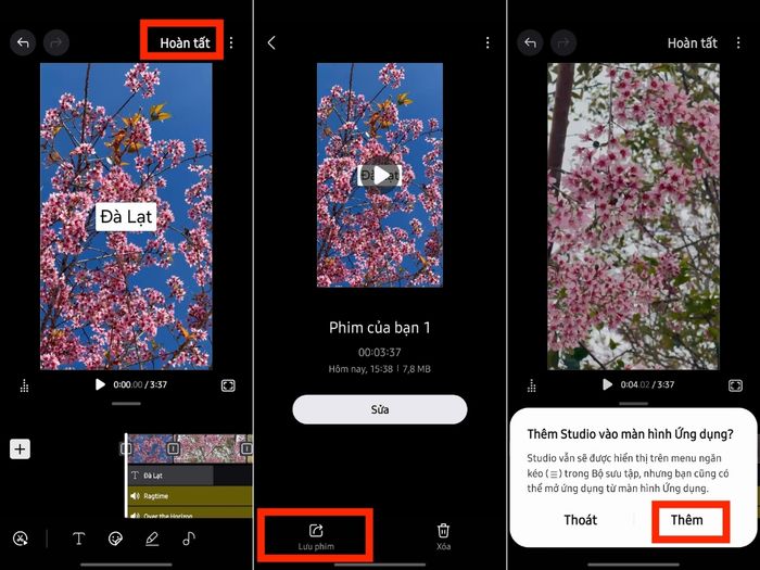 Bước 5: Sau khi hoàn thành mọi chỉnh sửa, chọn Hoàn tất > Bấm Lưu phim để ghi lại video đã biên tập.