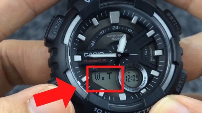 - Ấn nút Mode (C) nhiều lần cho đến khi màn hình hiển thị chế độ World Time (WT) hoặc Giờ Quốc tế.