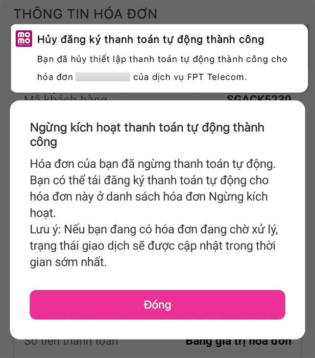 Bước 4: Nhập mật khẩu thanh toán để xác nhận yêu cầu > Một thông báo sẽ xuất hiện cho biết bạn đã hủy liên kết thành công và ngừng thanh toán tự động. Vậy là bạn đã hoàn tất việc hủy thanh toán tự động trên MoMo.