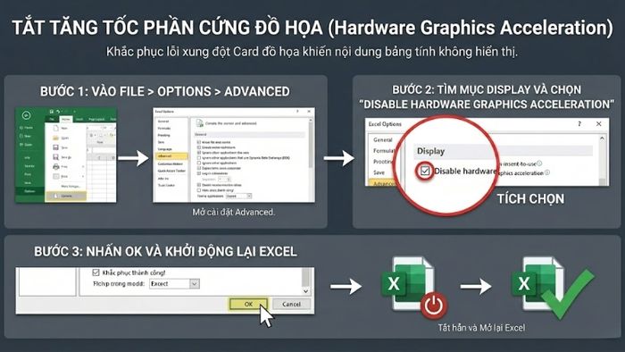 Đôi khi, Card đồ họa trên máy tính có thể xung đột với Excel khiến dữ liệu bảng tính không hiển thị.