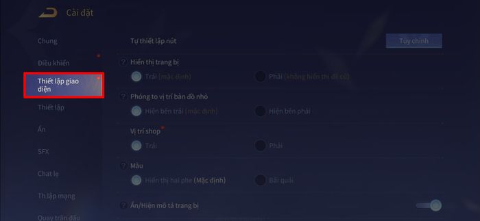 Bước 2: Trong giao diện cài đặt > Tiếp theo, chọn mục Thiết lập giao diện để tiếp tục.