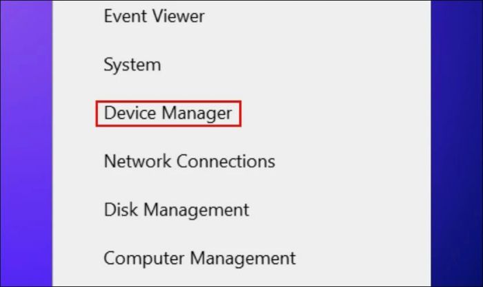 Bước 1: Tại nút Start, nhấp chuột phải và chọn Device Manager.