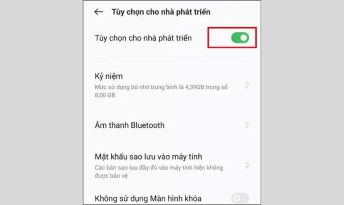 Bước 2: Tắt công tắc chế độ nhà phát triển.