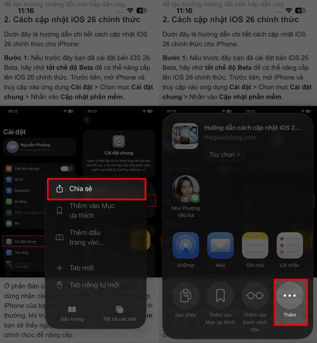 Bước 2: Trong menu xuất hiện, chọn mục Chia sẻ và sau đó tiếp tục nhấn vào Thêm.
