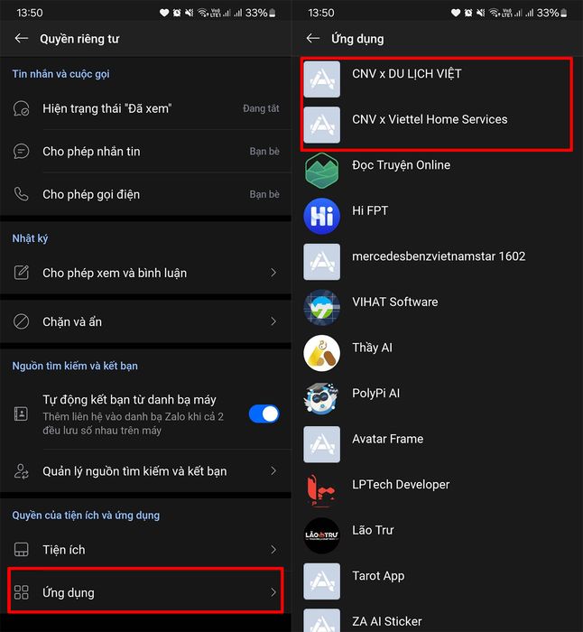 Các bước để xóa quyền truy cập Zalo của ứng dụng: