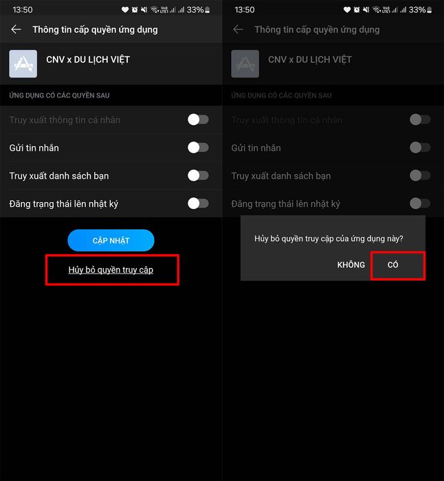 Bước 3: Chọn mục Xóa quyền truy cập > Nhấn Xác nhận để hoàn tất việc xóa quyền truy cập.