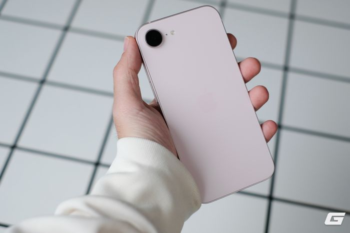 Ngược lại, gam Soft Pink trên iPhone 17e được xử lý theo hướng dịu nhẹ và trung tính hơn nhiều. Khi nhìn trực tiếp, thiết bị không tạo cảm giác “hồng nổi bật” mà giống một tông trắng pha nhẹ sắc hồng.