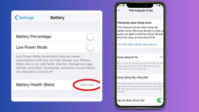 - Cảnh báo "Bảo dưỡng" (Service): Nếu xuất hiện thông điệp "Pin của bạn cần bảo dưỡng", đây là tín hiệu rõ ràng từ iOS cho thấy pin đã hư hỏng nặng.