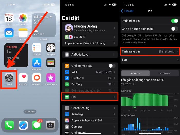 Hướng dẫn kiểm tra độ chai pin trong phần Cài đặt
