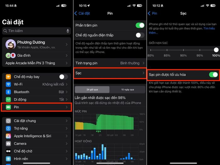 - Kích hoạt tính năng "Sạc pin tối ưu": Truy cập Cài đặt > Pin > Sạc > Sạc pin được tối ưu hóa để kéo dài tuổi thọ pin.