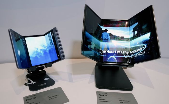Theo thông tin từ trang Techradar, smartphone gập ba màn hình của Samsung có thể sẽ sở hữu một phần bản lề lớn hơn so với phần còn lại (hình minh họa: Samsung Galaxy Flex G). Nguồn: Samsung.
