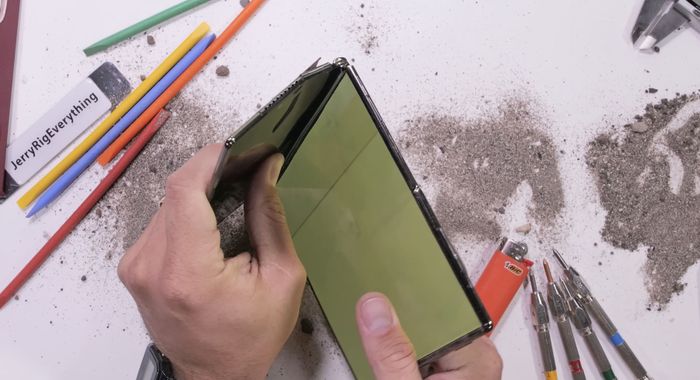 Chiếc HUAWEI Mate XT ULTIMATE DESIGN không thể vượt qua bài thử nghiệm bẻ cong của YouTuber JerryRigEverything, điều này cho thấy điện thoại màn hình gập ba có thể chưa thực sự bền bỉ. Vậy Samsung sẽ làm gì để cải thiện điều này trên sản phẩm của mình? Nguồn: JerryRigEverything.