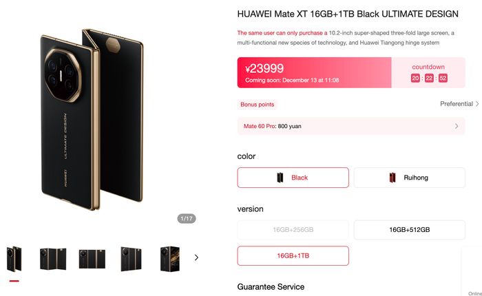 Phiên bản cao cấp nhất của HUAWEI Mate XT ULTIMATE DESIGN (RAM 16 GB, bộ nhớ trong 1 TB) có giá lên đến 23.999 Nhân dân tệ (~83.1 triệu đồng). Có khả năng sản phẩm Samsung cũng sẽ có giá bán tương tự. Nguồn: HUAWEI.