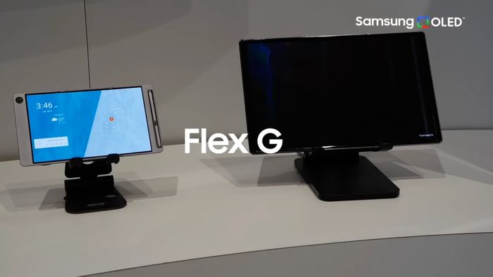Trước đây, tại sự kiện CES 2022, Samsung đã trình diễn nguyên mẫu smartphone gập kép với bản lề gập vào trong mang tên Galaxy Flex G (khi gập lại, thiết bị có hình dạng chữ G). Nguồn: ETNews.