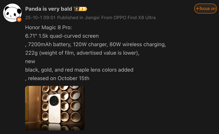 Cấu hình HONOR Magic 8 Pro (rò rỉ)