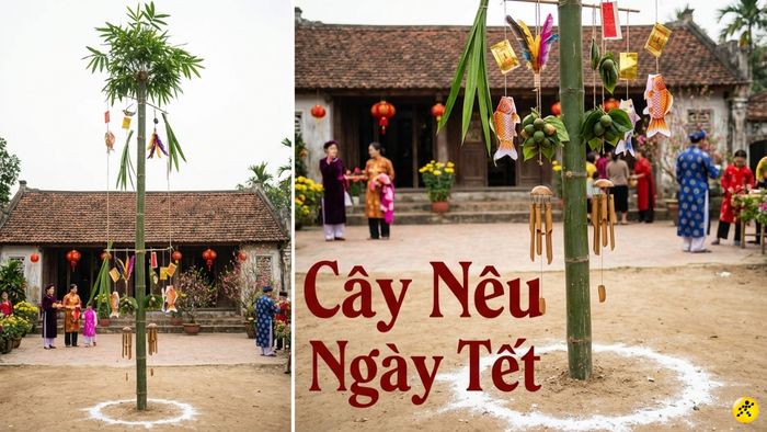 Cây nêu là một cây tre cao, được dựng ngay trước sân nhà vào dịp Tết, mang theo ý nghĩa tâm linh sâu sắc và cũng là vật trang trí báo hiệu mùa xuân đến.