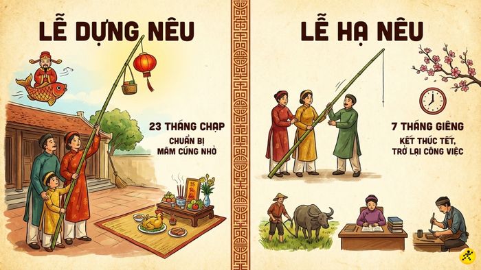 Thời điểm phổ biến để dựng cây nêu thường rơi vào ngày 23 tháng Chạp, sau khi đã thực hiện lễ cúng Táo quân. Gia chủ cần dọn dẹp sân vườn sạch sẽ và chuẩn bị một mâm lễ nhỏ để cúng trời đất trước khi thực hiện nghi thức dựng nêu.