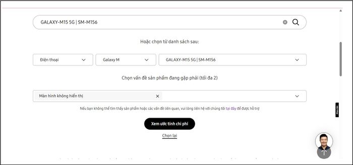 Trang tra cứu chi phí sửa chữa chính thức từ Samsung