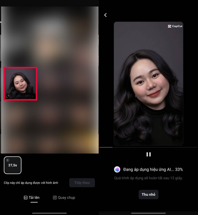 Bước 3: Nhấn Sử dụng mẫu > Tải ảnh của bạn lên để AI bắt đầu xử lý và tạo hiệu ứng.
