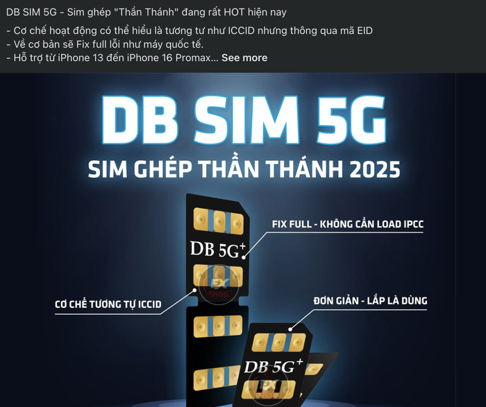 Gần đây, cộng đồng người dùng iPhone lock tại Việt Nam đang đặc biệt quan tâm đến một loại SIM ghép mới mang tên Double SIM (DB SIM) 5G. Loại SIM này được quảng cáo là có thể khắc phục hầu hết các hạn chế của các dòng SIM ghép trước đó, giúp máy lock hoạt động ổn định như phiên bản quốc tế, bao gồm việc không bị mất sóng, hỗ trợ đầy đủ 5G, iMessage, FaceTime và danh bạ.