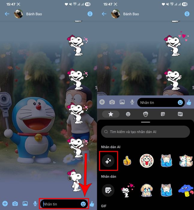 Bước 2: Trong cửa sổ trò chuyện, nhấn vào biểu tượng mặt cười nằm ở thanh công cụ phía dưới > Sau đó, chọn biểu tượng nhãn dán AI vừa được cập nhật.
