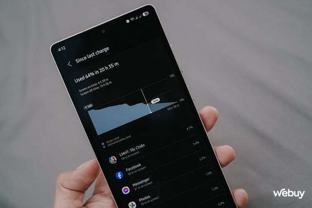 Thực tế cho thấy khi sử dụng với các tác vụ hỗn hợp như chơi game LMHT: Tốc Chiến, lướt mạng xã hội, xem ảnh… Galaxy S25 Ultra có thể hoạt động được khoảng 4 tiếng rưỡi trên màn hình. Đây là mức sử dụng rất ổn và đủ để đáp ứng một ngày dài làm việc. Trong hầu hết các trường hợp, máy có thể trụ tới 6 giờ chiều trước khi báo pin yếu. Nếu không chơi game, thời gian sử dụng có thể kéo dài hơn.