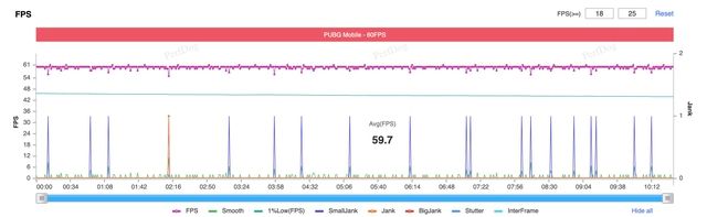 FPS trung bình sau 10 phút chơi liên tục luôn đạt 59,2, chỉ có một số tình huống drop nhẹ nhưng không làm gián đoạn trải nghiệm.